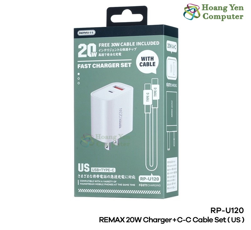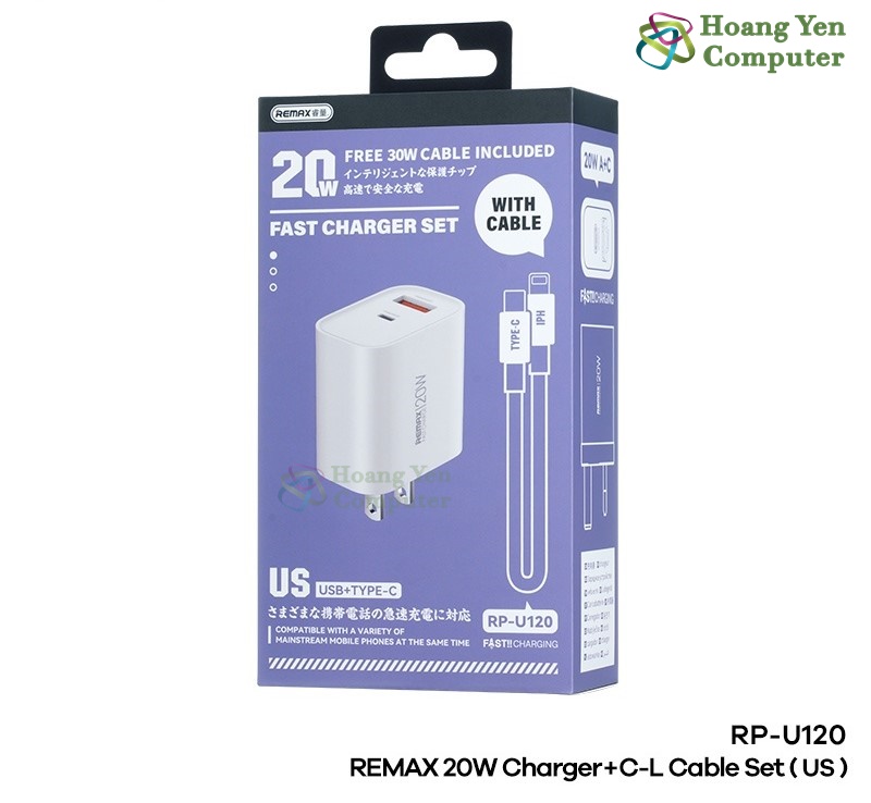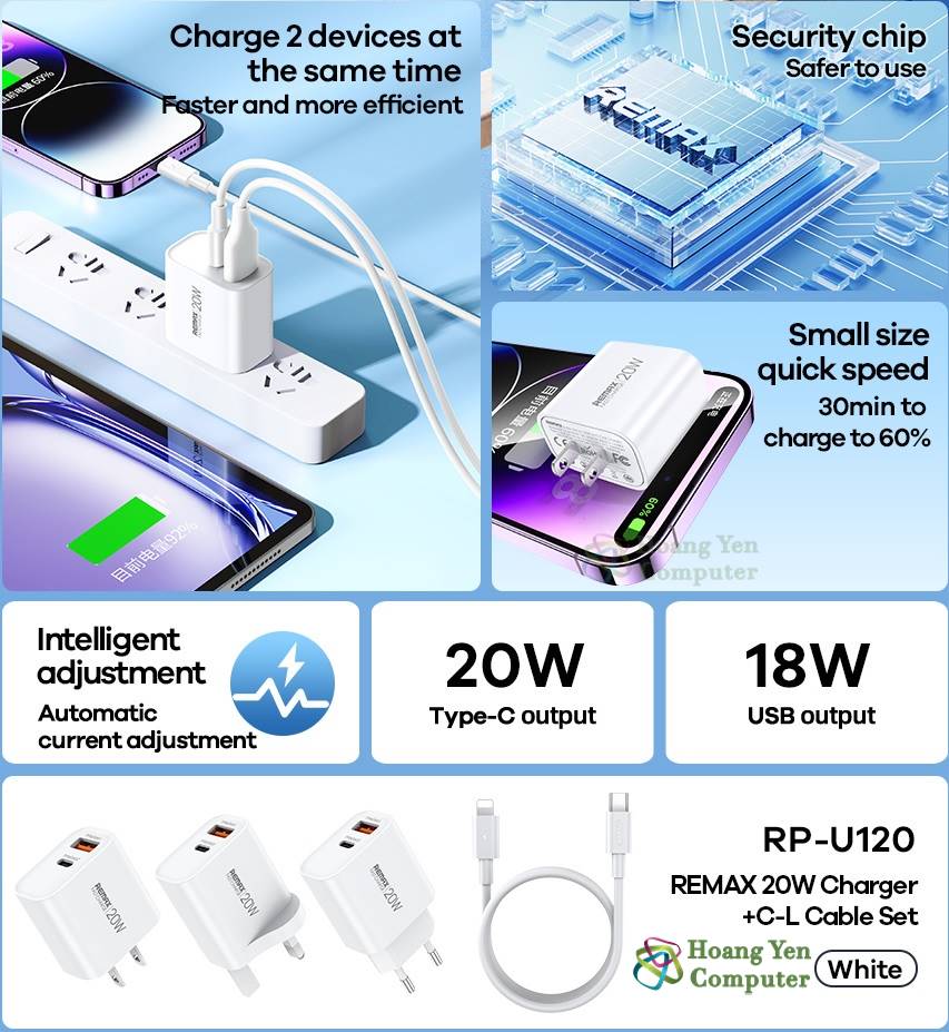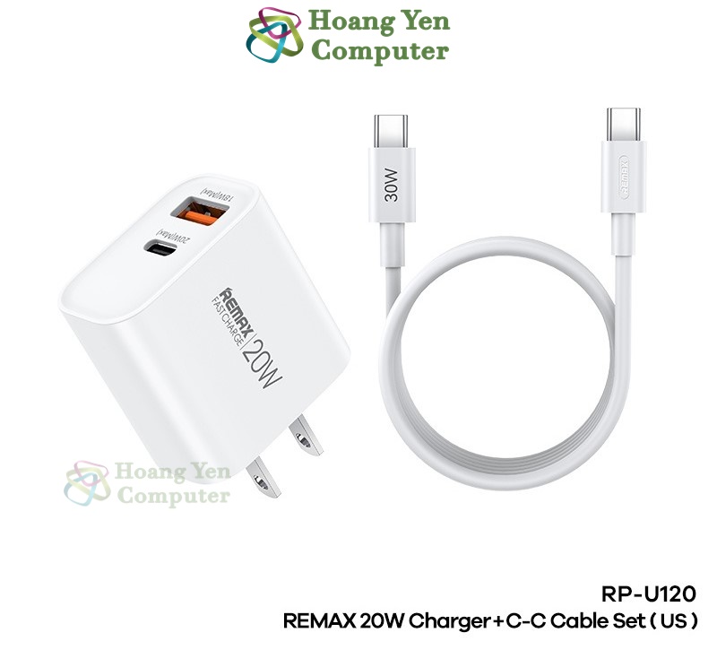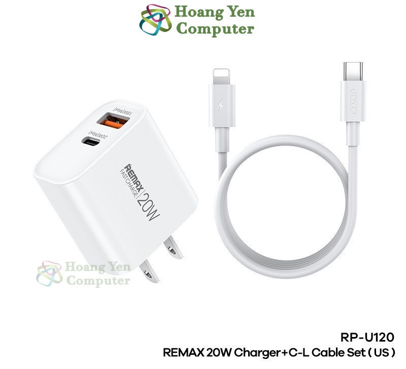 Bộ Sạc Nhanh PD 20W Remax RP-U120 Chính Hãng 2 Cổng Sạc (Cổng USB + Cổng Type C) - BH 12 Tháng - Hoàng Yến Computer