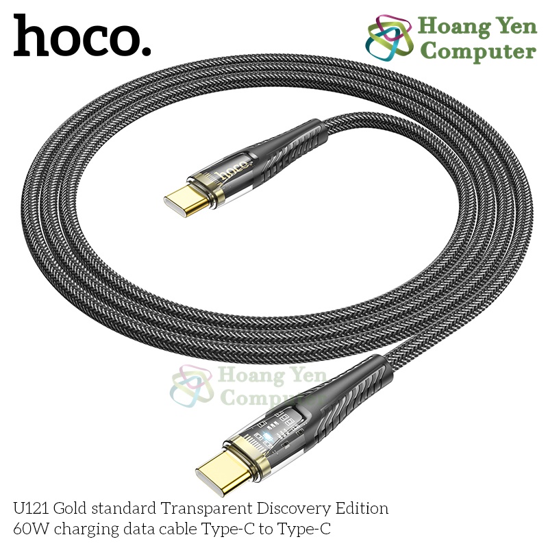Cáp Sạc Nhanh Hoco U121 Crystal Charging Data Cable 27W–60W, Dây Dù, Đèn LED - BH 1 Năm - Hoàng Yến Computer