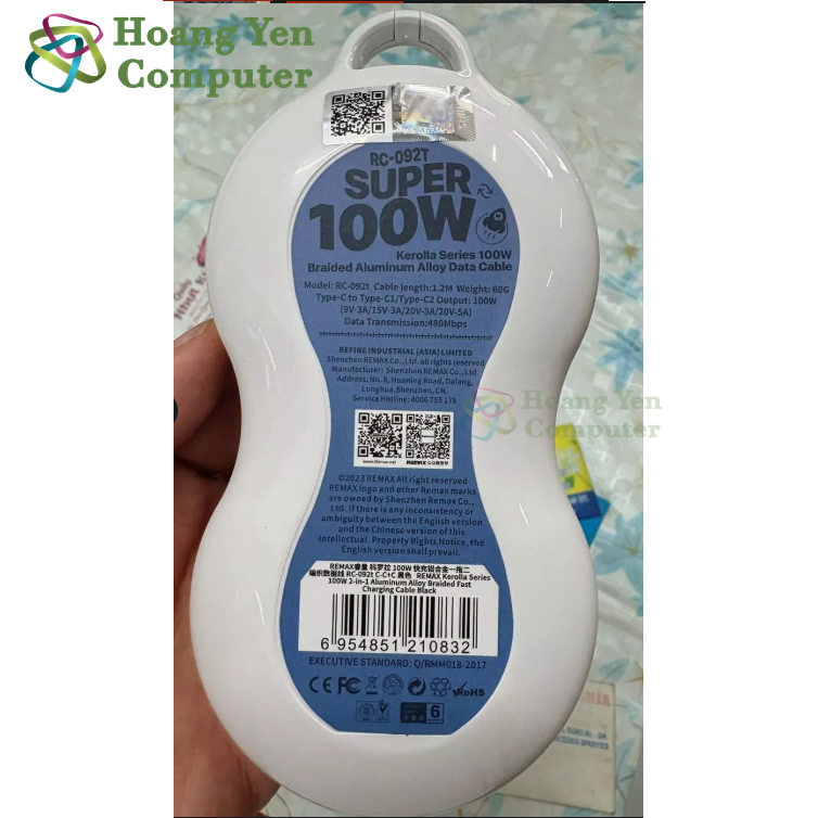 Cáp Sạc Nhanh Remax RC-092T 100W – Dây Bện Siêu Bền 2 Đầu Ra (C to C + C) – BH 1 Năm – Hoàng Yến Computer