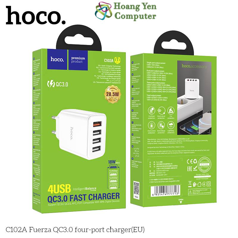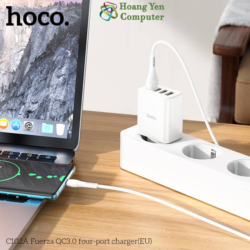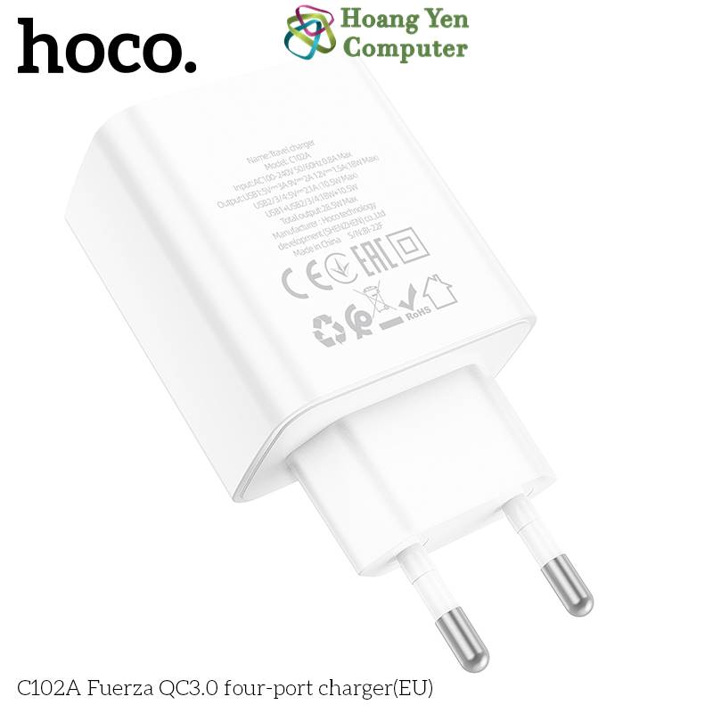 Cốc Sạc Nhanh 4 cổng USB Hoco C102A 28.5W - Sạc Nhanh QC3.0 18W - BH 12 Tháng - Hoàng Yến Computer