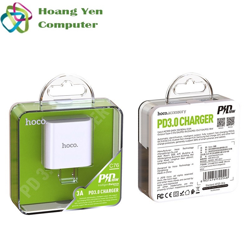 Sạc nhanh giờ đây đã trở thành một trang bị tiêu chuẩn trên các thiết bị smartphone. Theo xu thế đó, các hãng phụ kiện cũng tung ra những phụ kiện hỗ trợ công nghệ sạc nhanh. Một trong số đó là Hoco, với sản phẩm cốc sạc nhanh hoco C76. Một chiếc cốc sạc trang bị chuẩn sạc nhanh PD18W, QC3.0 mới nhất hiện nay.