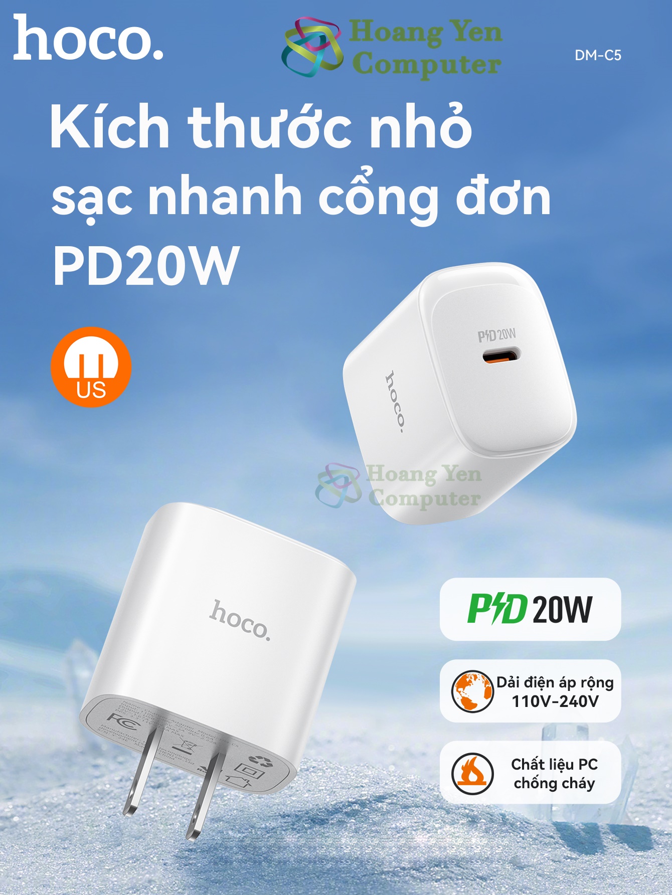 Cốc Sạc Nhanh HOCO DMC5 PD 20W Type-C – Thiết Kế Gọn, Chuẩn US - Chính Hãng BH 12 Tháng - Hoangyencomputer