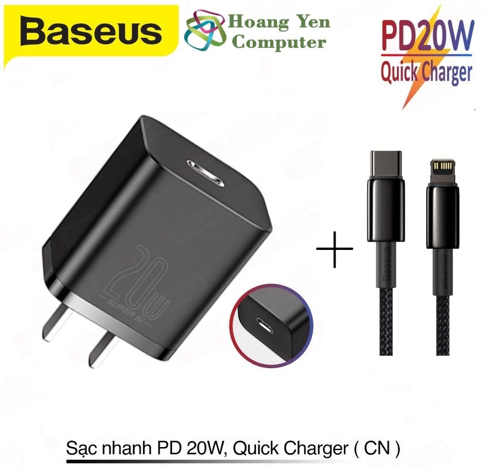 + Sản phẩm gồm: Cốc sạc Baseus Super Si + Cáp sạc Type C - Ligtning Baseus Tungsten