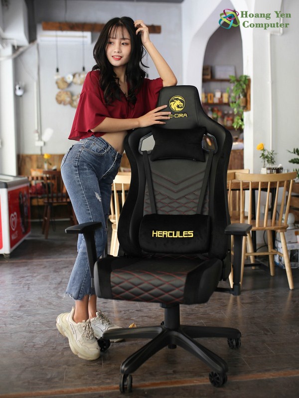 Thêm một điểm cộng nữa là Ghế E-DRA Hercules EGC203 được kèm 2 gối nhung rất đẹp và sang trọng. Gối dùm để kê ở lưng và cổ giúp cột sống thẳng và đỡ mỏi cổ khi ngồi trươc máy tính trong thời gian dài.