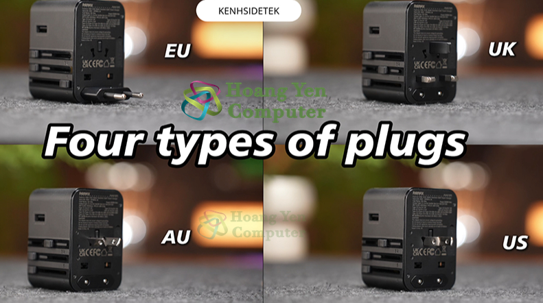 - Thiết kế đa năng, tích hợp 4 loại đầu cắm (US, EU, UK, AU), phù hợp sử dụng tại hơn 200 quốc gia.