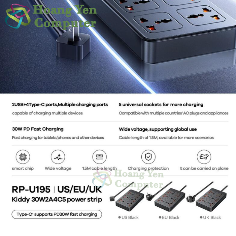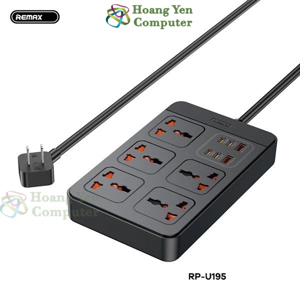Ổ Cắm Điện Đa Năng Remax RP-U195 2500W (5 cổng AC, 2 cổng USB, 4 cổng Type C PD65W) - BH 6 Tháng | Hoangyencomputer