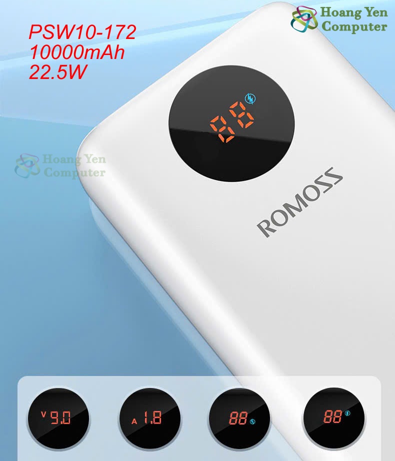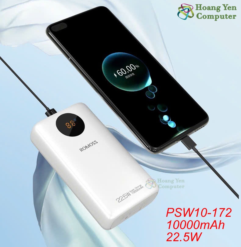 [ROMOSS PSW10-172] Pin Sạc Dự Phòng SW10PF 10000mAh 22.5W QC+PD - BH 12 Tháng - Hoàng Yến Computer