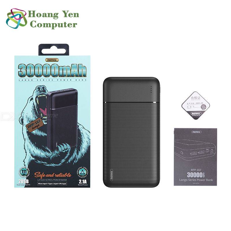 Pin sạc dự phòng REMAX RPP-167 với thiết kế đơn giản với hiệu suất vượt trội. Cùng với dung lượng 30.000mAh giúp bạn sạc được thiết bị lâu hơn nhiều hơn - bạn có thể sử dụng thoải mái và di chuyển dễ dàng.