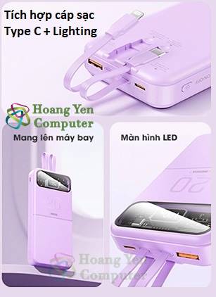 ✅ Cáp tích hợp : Cáp Type C (22.5W) ; Cáp Lightnig (PD20W).