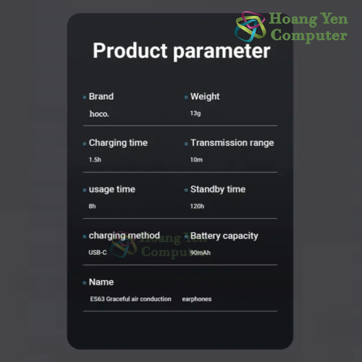 Tai nghe Bluetooth HOCO ES63 – Tai Nghe Thể Thao Air Conduction, Thoái Mái Khi Vận Động – BH 12 Tháng – Hoangyencomputer