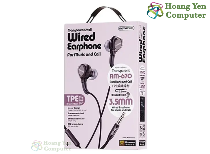 Tai Nghe Có Dây Remax RM-670 Jack Cắm 3.5mm, Có Micro Đàm Thoại - Chính Hãng - Hoàng Yến Computer