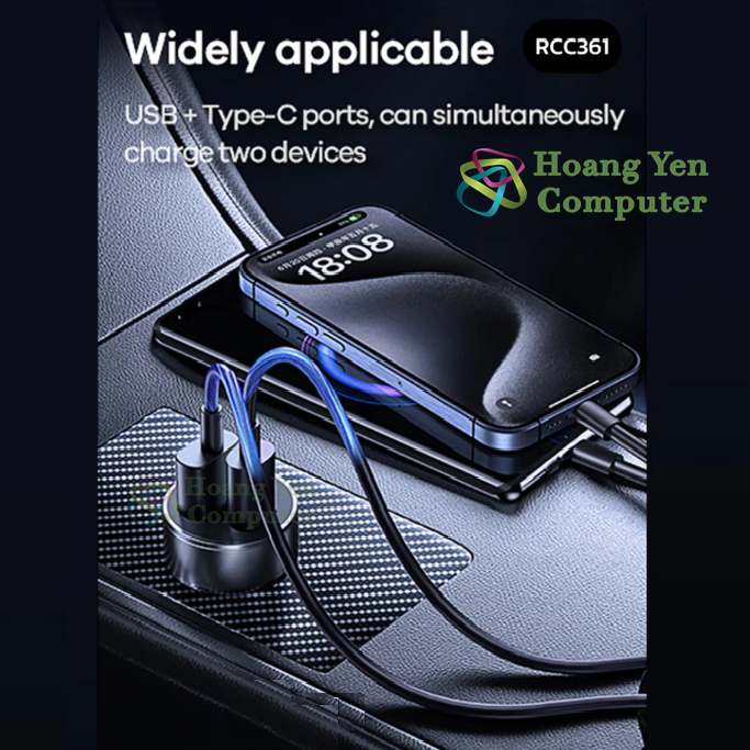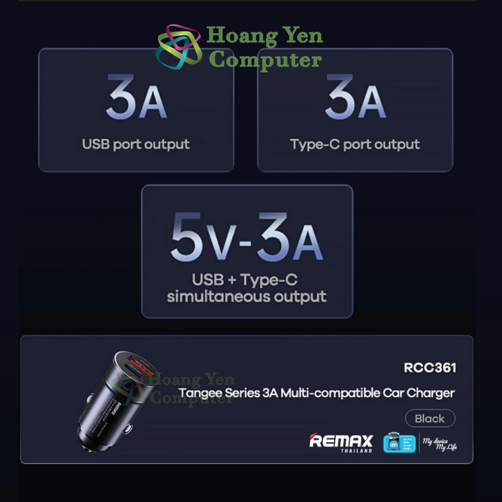 Tẩu Sạc Ô Tô Remax RCC361 Fast Charging 3A – Nhỏ Gọn, 2 Cổng Sạc (USB + Type-C) – BH 6 Tháng – Hoangyencomputer